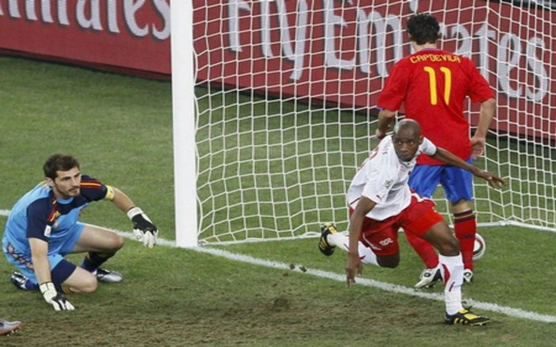 Dù được đánh giá cao trước giải đấu, hành trình của Tây Ban Nha tại World Cup 2010 lại khởi đầu không hề dễ dàng. Trong trận ra quân, họ bất ngờ để thua Đội tuyển Thụy Sĩ với tỷ số 0-1. Đây được xem là cú sốc lớn bởi Tây Ban Nha kiểm soát bóng áp đảo nhưng lại không thể xuyên thủng hàng phòng ngự đối phương. Tuy nhiên, sau thất bại này, đội bóng của Vicente del Bosque đã nhanh chóng lấy lại phong độ.
